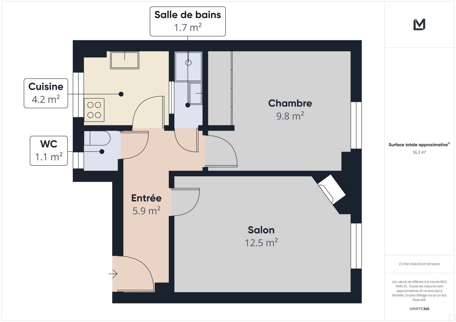 L’appartement se compose d’une entrée desservant un séjour lumineux, une chambre confortable, une cuisine séparée, une salle d’eau et des WC indépendants. Bien agencé, il offre un cadre de vie agréable dans un environnement central, à proximité immédiate des commerces, des transports.