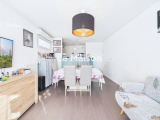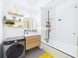 Cet appartement aux normes PMR est composé d'une entrée avec rangements, d'un salon - salle à manger donnant sur un beau balcon sans vis à vis, une cuisine ouverte aménagée et équipée.