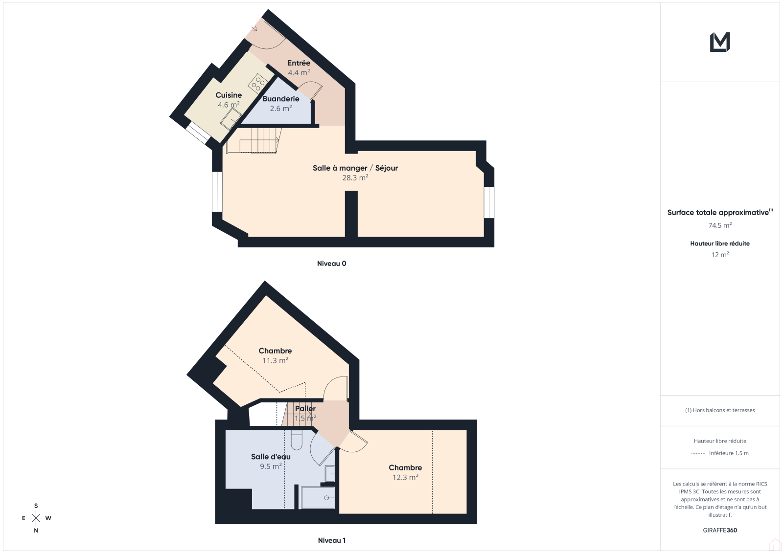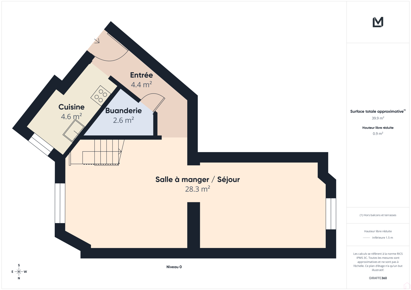 Ce duplex est au 3ème et dernier étage, d'une petite copropriété vous propose au premier niveau :