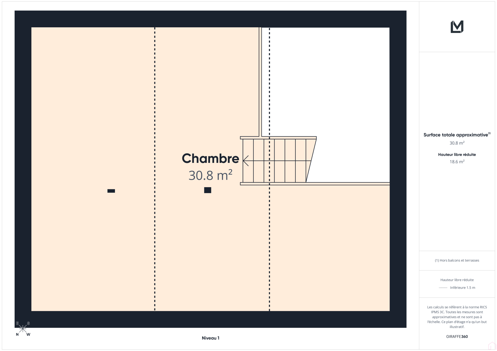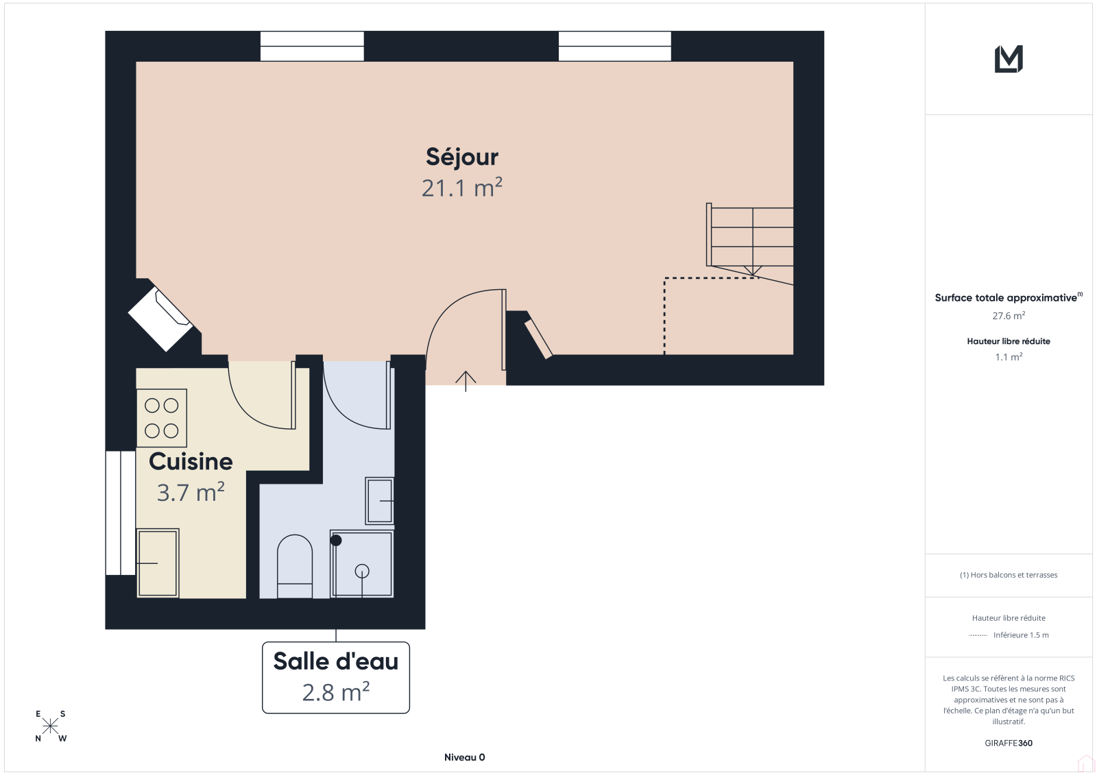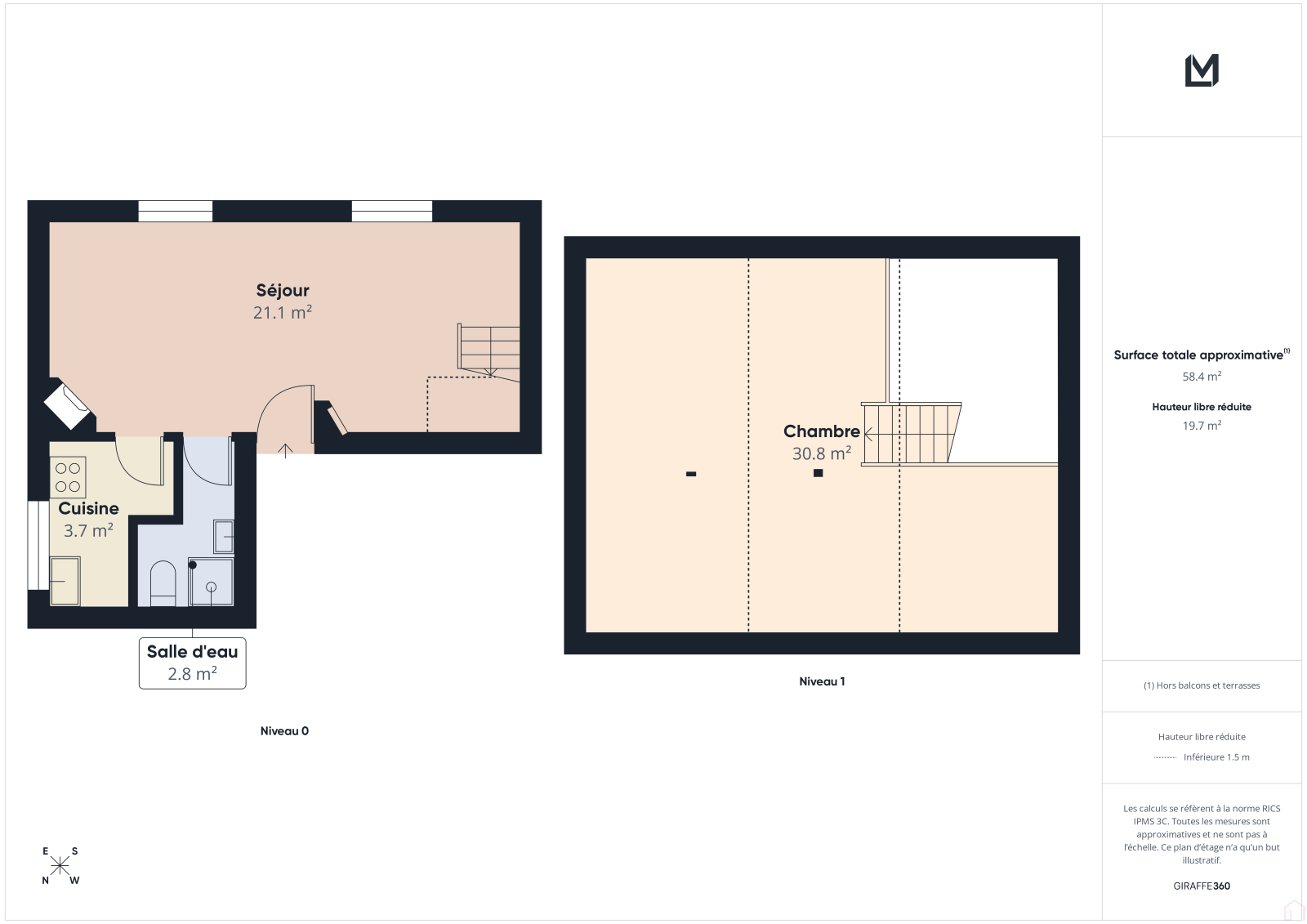 Cet appartement de 67m2 au sol (31m2 Loi Carrez) se compose d’un séjour lumineux, une cuisine aménagée, une salle d'eau avec WC et d’une chambre confortable en mezzanine.