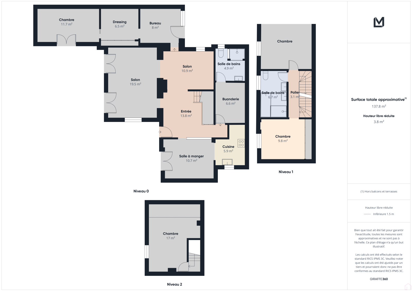 À ce même niveau, une extension réalisée avec goût offre un espace bureau, une chambre, ainsi qu’une pièce dressing attenante.