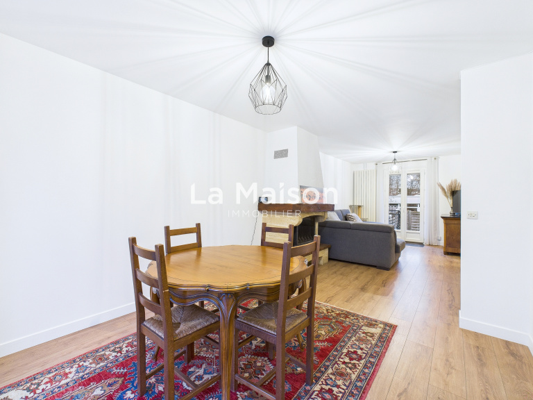 Édifiée sur un terrain de 220 m², elle se compose, au rez-de-chaussée, d’un séjour traversant avec insert, ouvrant sur une terrasse et un jardin exposés sud, d’une cuisine récente entièrement aménagée et d’un WC séparé.