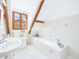 A l'étage, le palier dessert trois chambres avec rangements, un bureau, une salle de bains, une buanderie et un WC séparé.