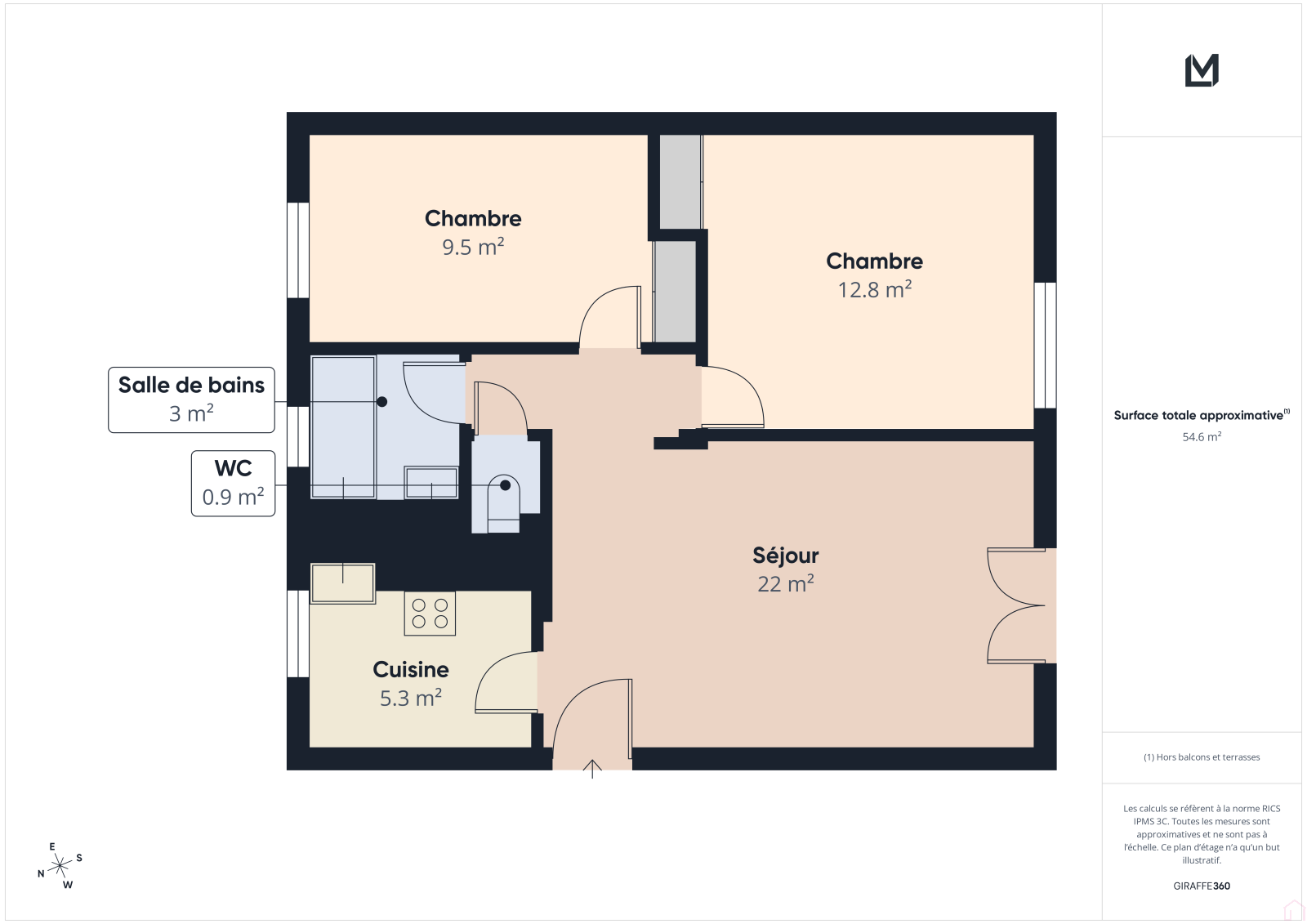 Cet appartement est composé d'un salon - salle à manger, d'un coin cuisine indépendant, de deux chambres, ainsi que d'une salle de bains avec WC séparé.