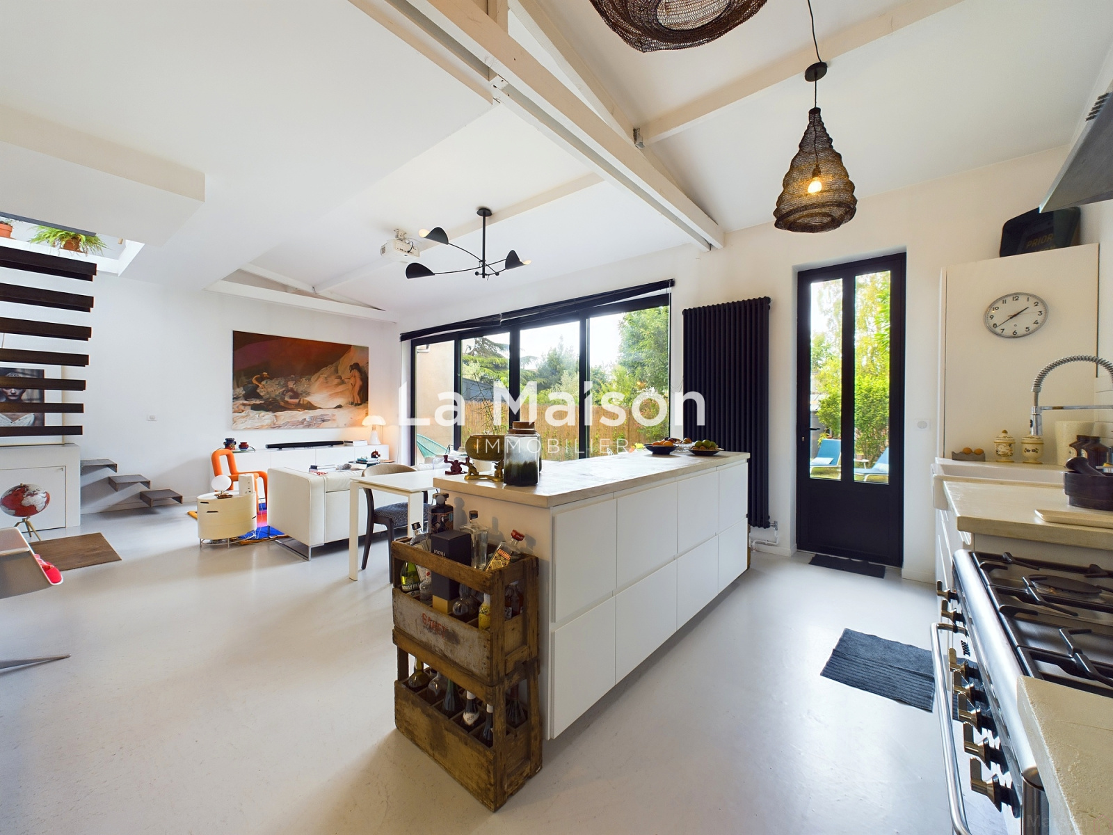 - Pièce à vivre lumineuse de 41m² avec une cuisine ouverte sur salon-séjour, illuminée par de grande baie vitrée de 5m