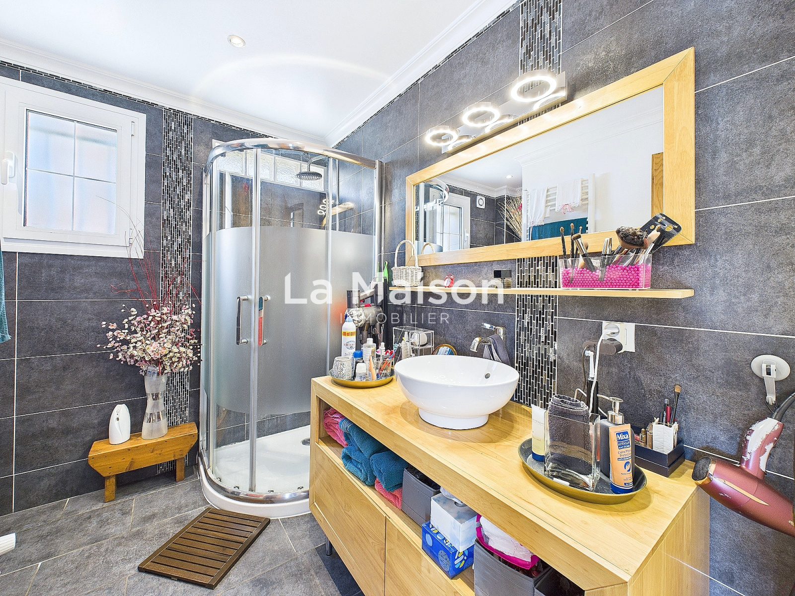 Le sous-sol semi-enterré offre une chambre avec sa propre salle d’eau et WC, une buanderie et un garage avec un accès direct au jardin. À l’extérieur, une belle terrasse sans vis-à-vis accompagnée d’une cuisine d’été vient compléter cette maison parfaitement entretenue.
