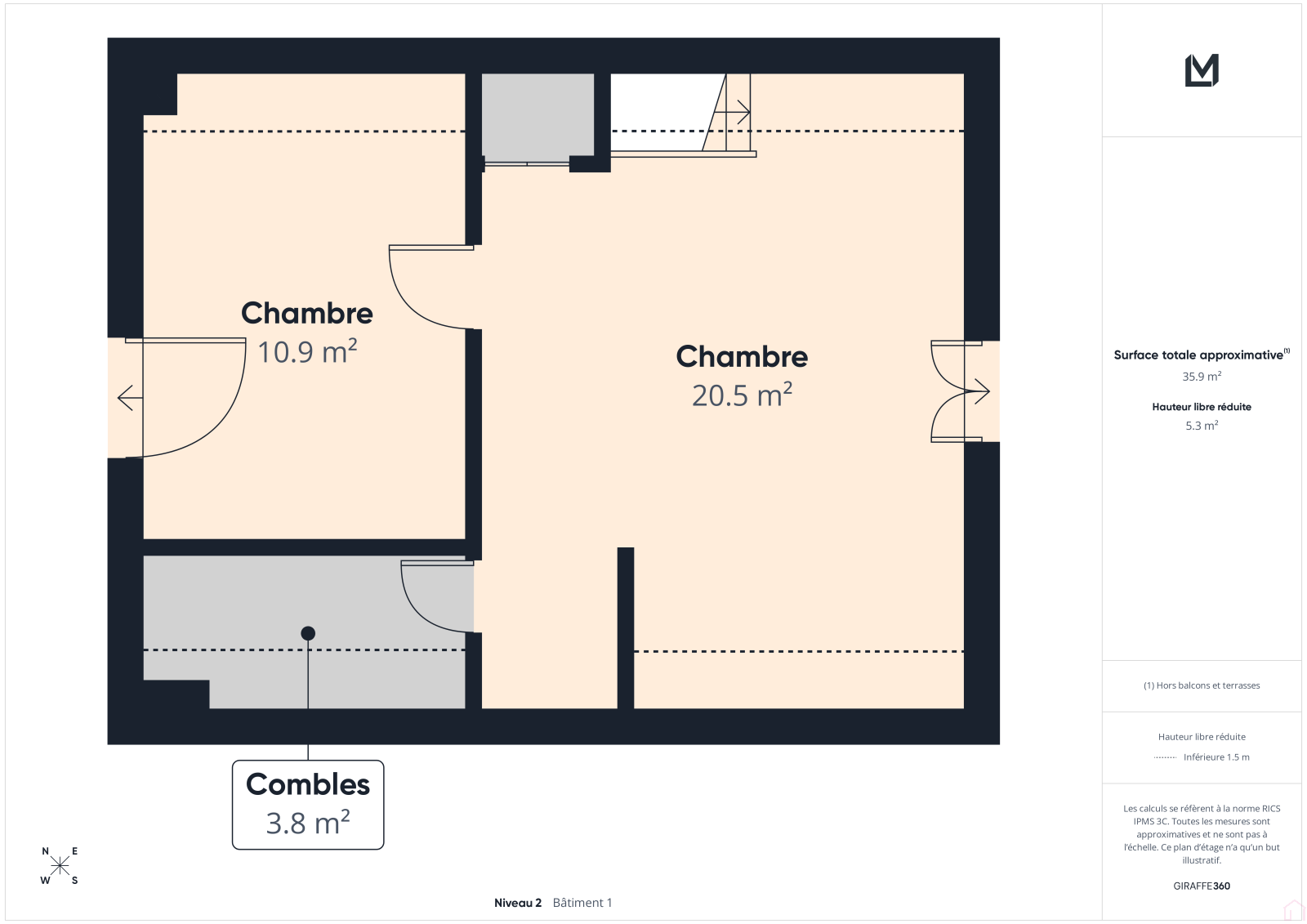 Au premier étage, l’espace nuit se compose de deux belles chambres, d’un dressing et d’une salle d’eau.