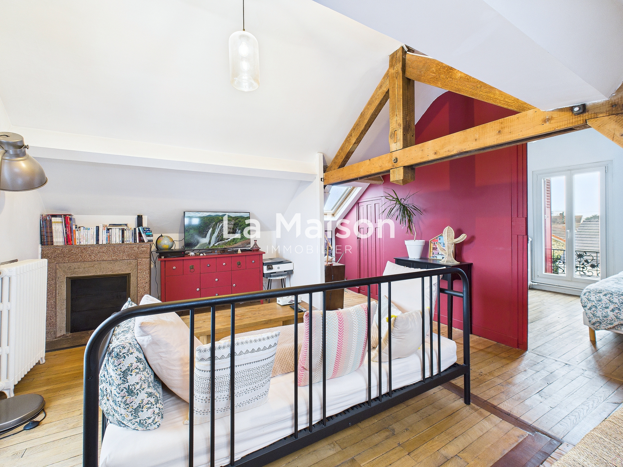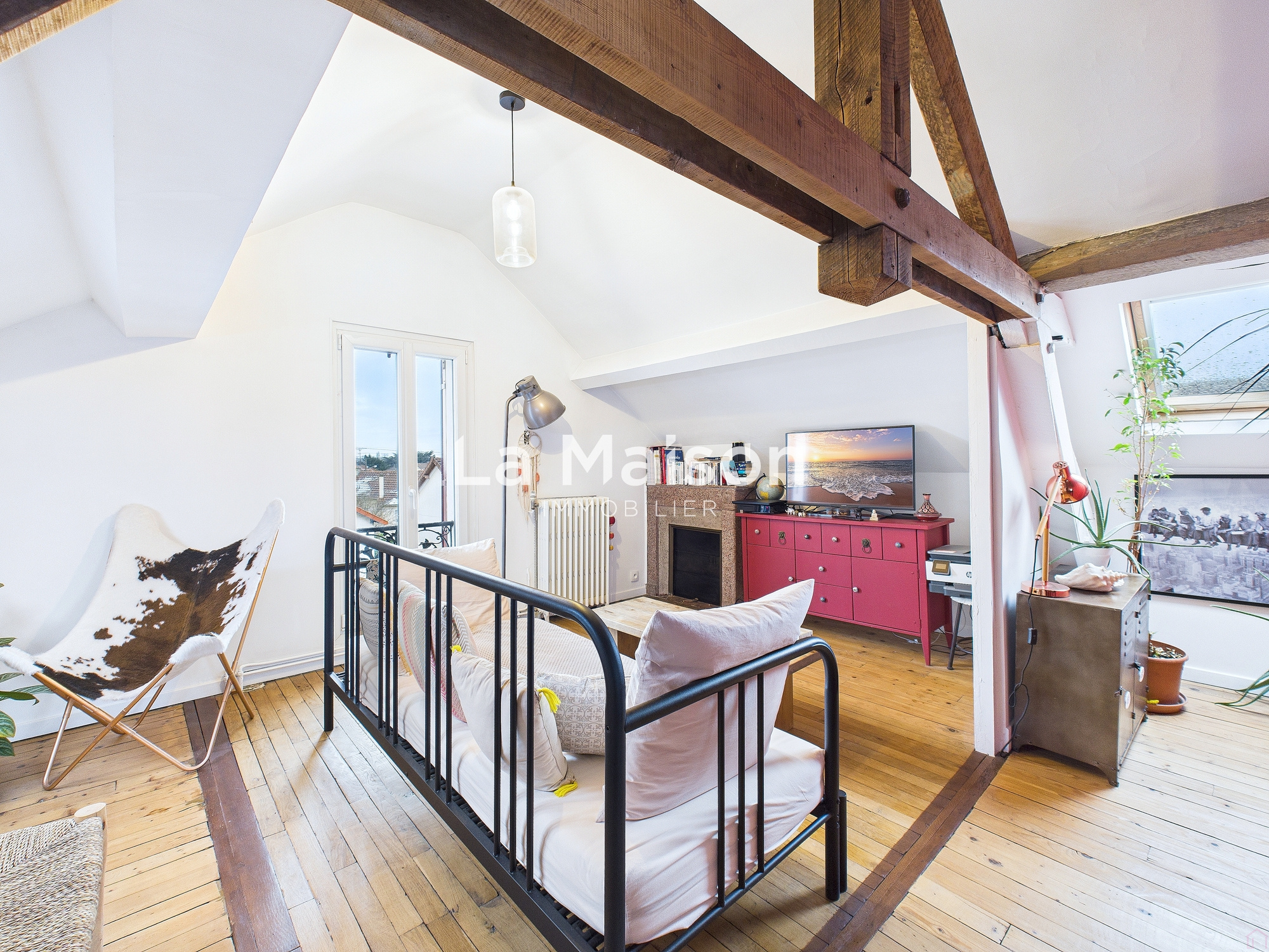 Dans les combles aménagés, un salon et une dernière chambre offrent un espace supplémentaire.