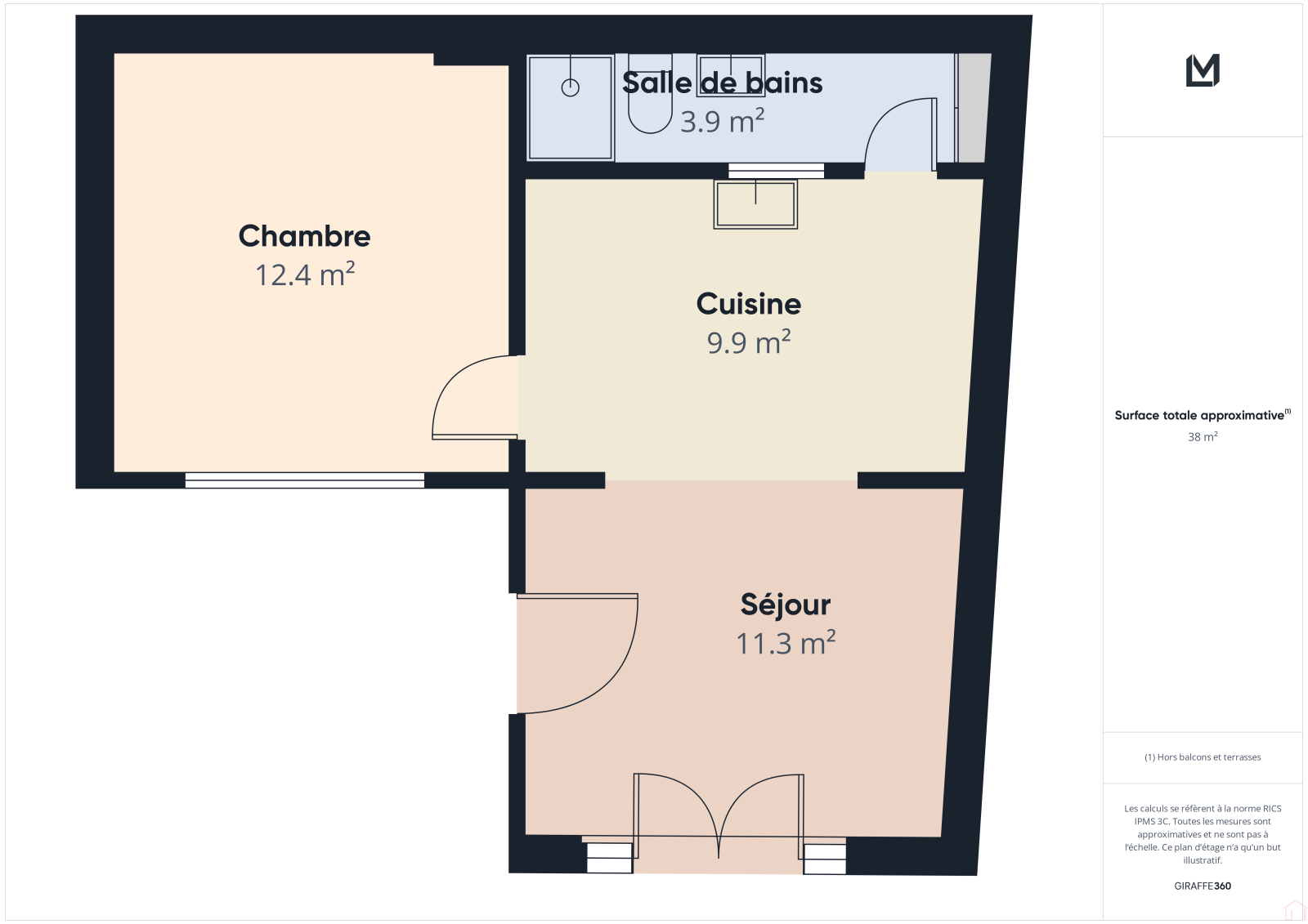 Il se compose d’un séjour lumineux avec cuisine ouverte, d’une chambre confortable et d’une salle d'eau.