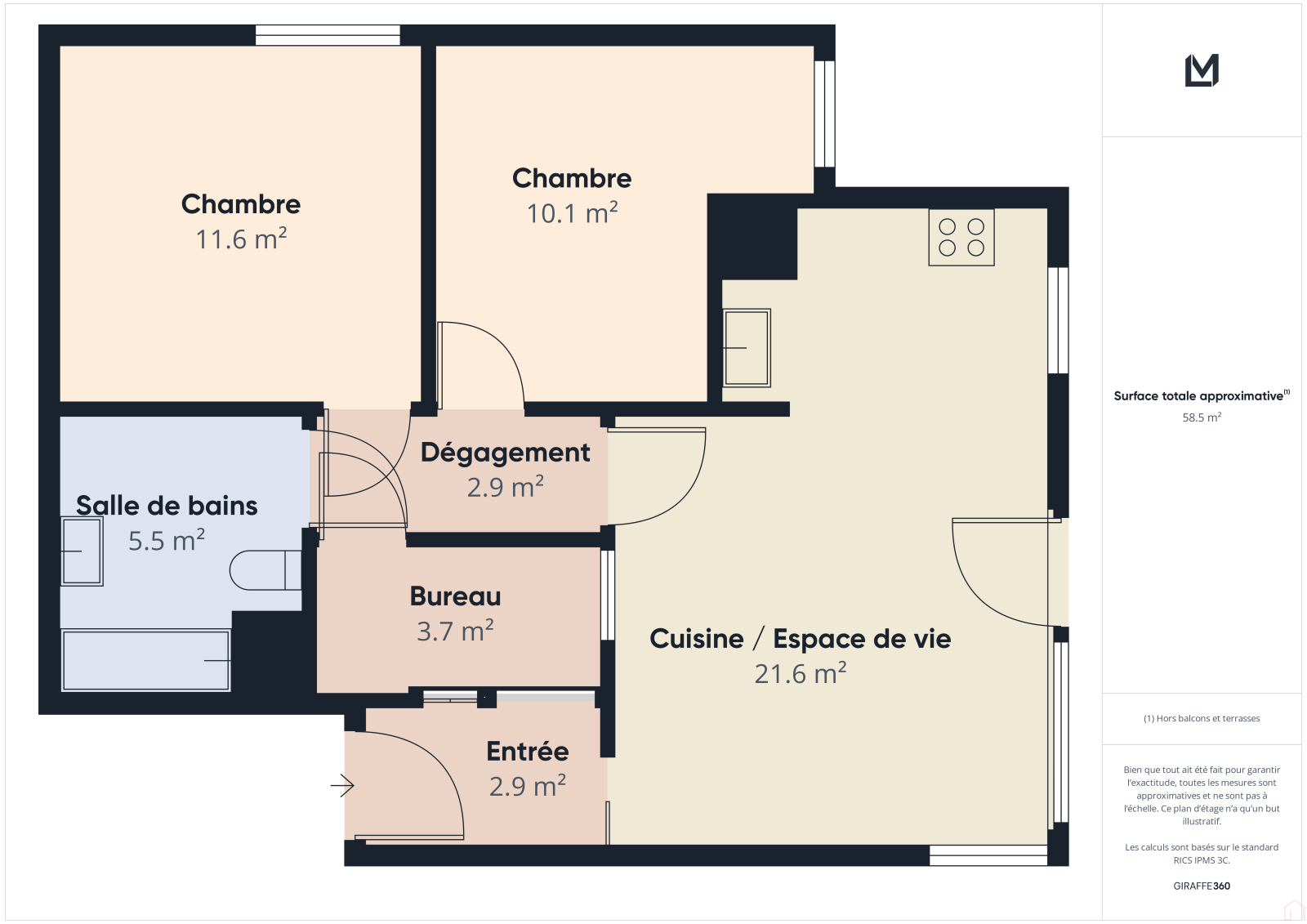Situé au 3ème étage d'une copropriété de 5 niveaux avec ascenseur, cet appartement lumineux se distingue par son agencement astucieux et ses finitions soignées. Il est composé d'une entrée accueillante, d'une cuisine équipée ouverte sur un salon-séjour baigné de lumière, offrant un espace convivial et chaleureux.