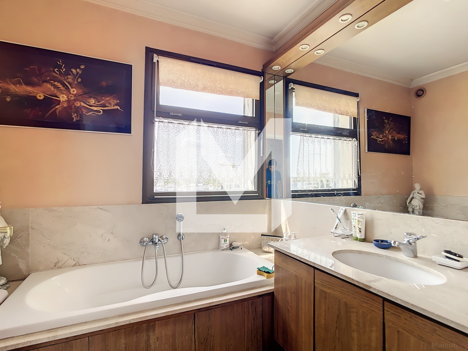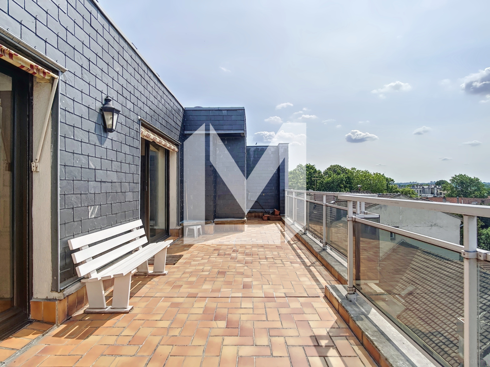 Aulnay-sous-Bois (93600)Au pied du boulevard Strasbourg avec ses nombreux commerces, des écoles, des crèches ainsi qu'à seulement cinq minutes de la gare RER ! Nous vous proposons un appartement familial de type 5 pièces au 5ème et dernier étage d'une copropriété de bon standing. Cet appartement bénéficie d'une surface de plus de 110m2, avec une double exposition et de nombreux accès extérieurs tels qu'une immense terrasse exposée plein sud de 23m2. À l'intérieur, vous découvrirez une belle entrée, un salon-salle à manger d'une surface de 28m2, un bureau donnant accès à un deuxième espace extérieur, une cuisine indépendante et dinatoire, trois chambres, une salle de bains, une salle d'eau et deux toilettes et un cellier. Parmi les prestations supplémentaires, vous trouverez une climatisation réversible dans le salon, des fenêtres à double vitrage en PVC. L'appartement bénéficie également d'un double box avec porte électrique, d'une place de parking privative et d'une cave.